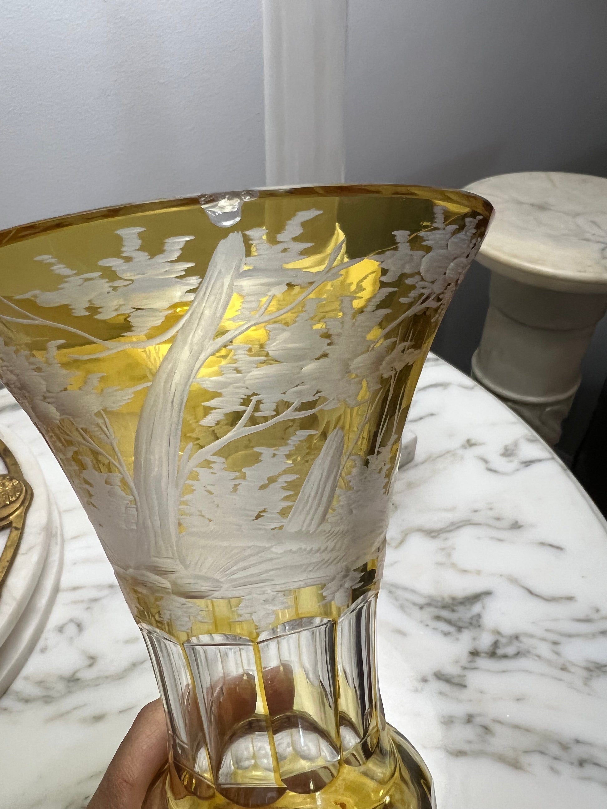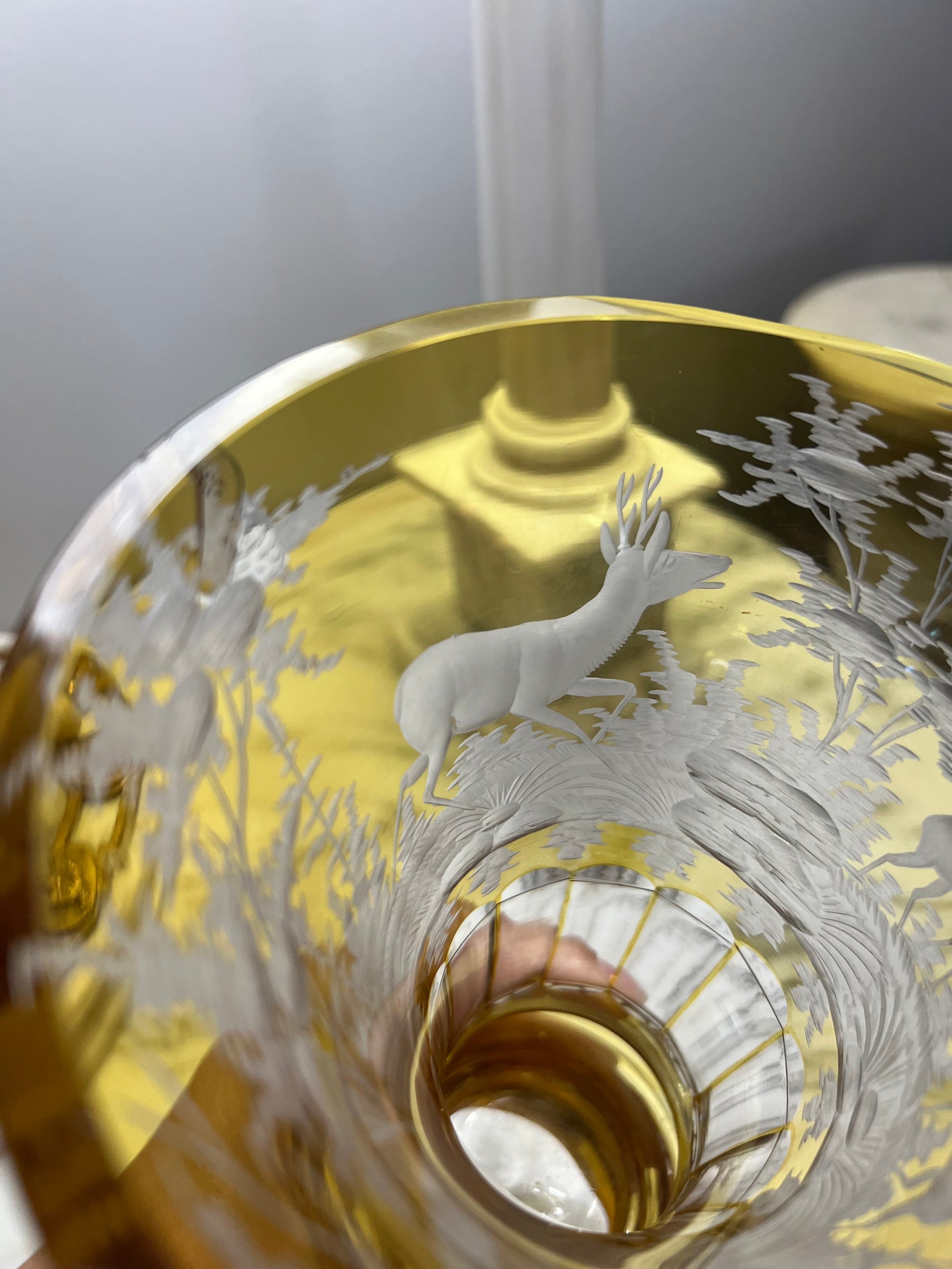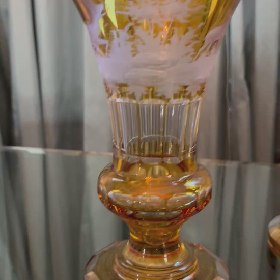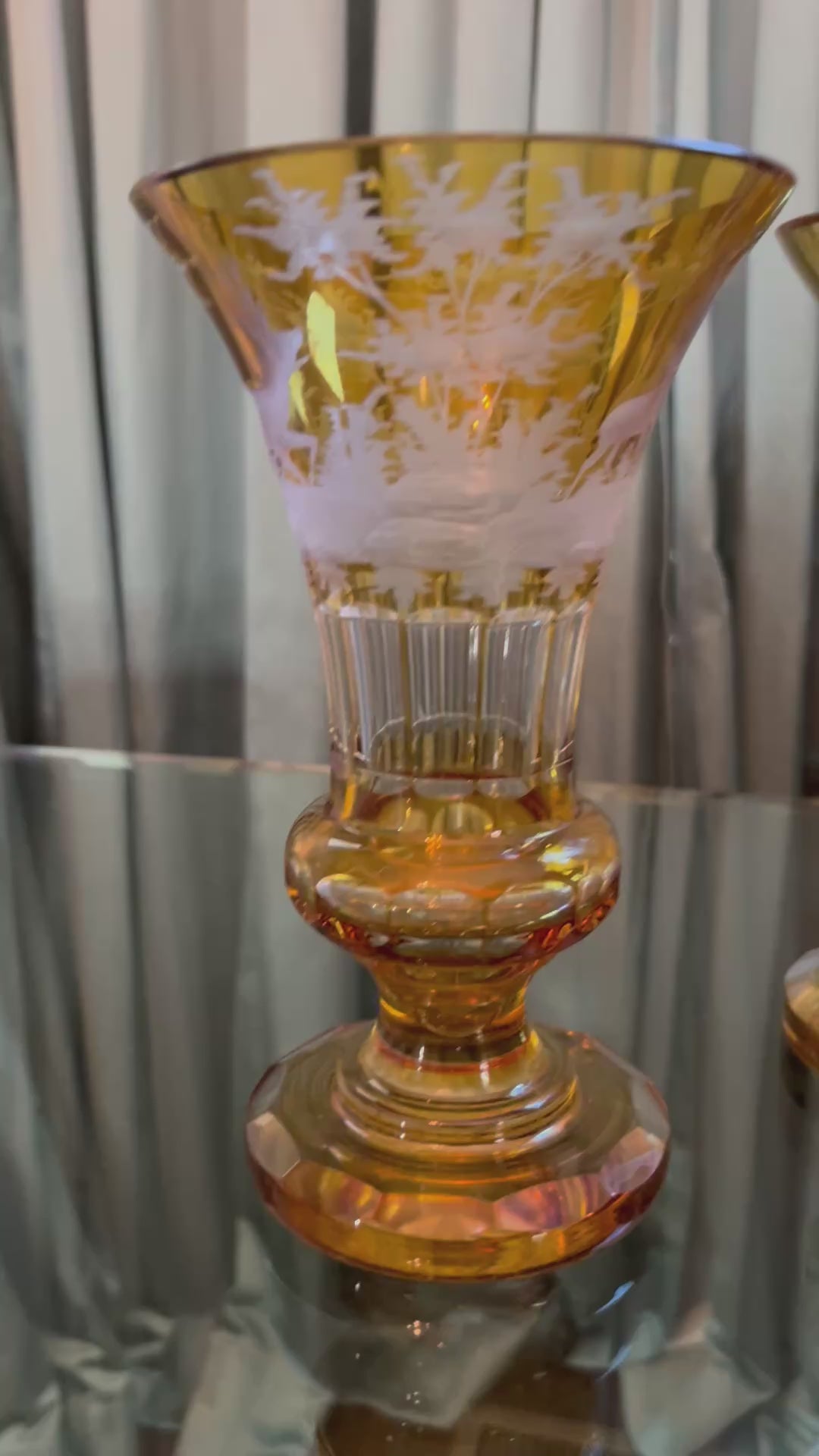 The warm amber gold tone is a classic Bohemian palette, originally used for holiday tables, parlor displays, and special celebrations. Collectors love these pieces for their craftsmanship, weight, and Old World glow.